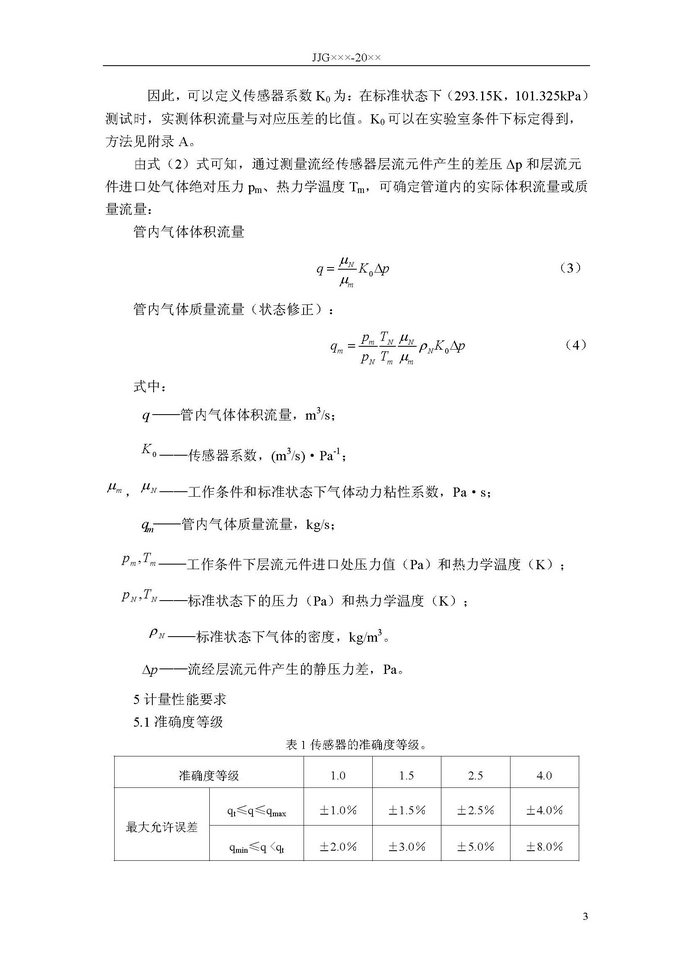 《氣體層流流量傳感器檢定規(guī)程》JJG7 36- 20XX
