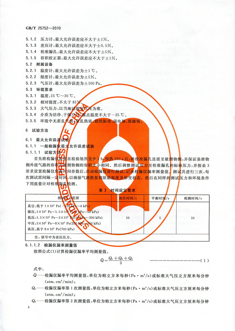 《差壓式氣密檢漏儀》GB/T 25752—2010