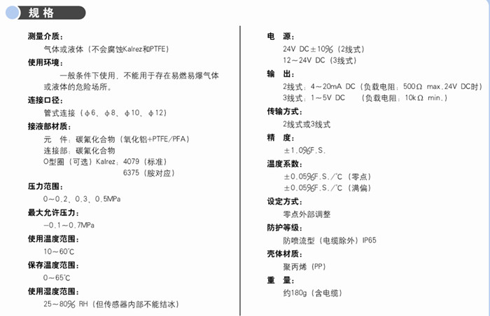 該產(chǎn)品接液部表面采用了碳氟化合物,最大程度洗脫金屬離子。EMC耐久性保證(已取得CE認(rèn)證),適用于半導(dǎo)體制造裝置中純水、藥液和泵的壓力監(jiān)測(cè)。