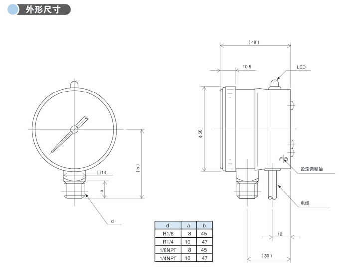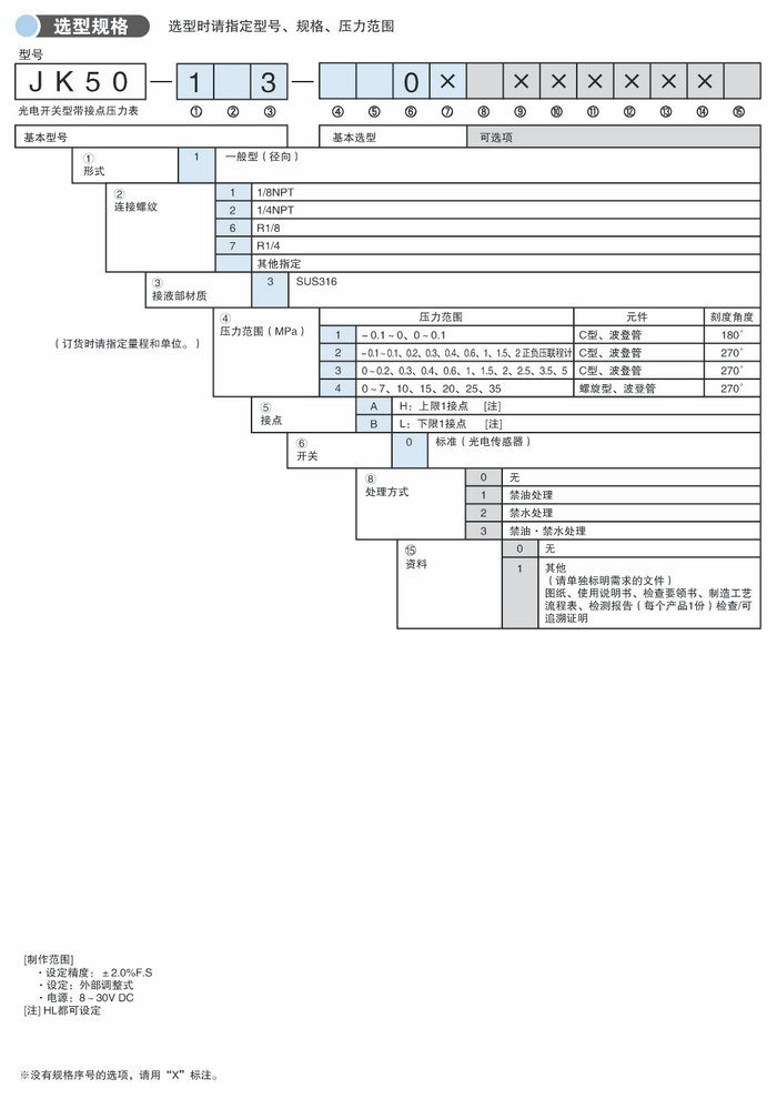 本產(chǎn)品是小型帶接點(diǎn)壓力表,內(nèi)置了可靠性的光電開關(guān),主要用于控制報(bào)警輸出和繼電器的開關(guān)等